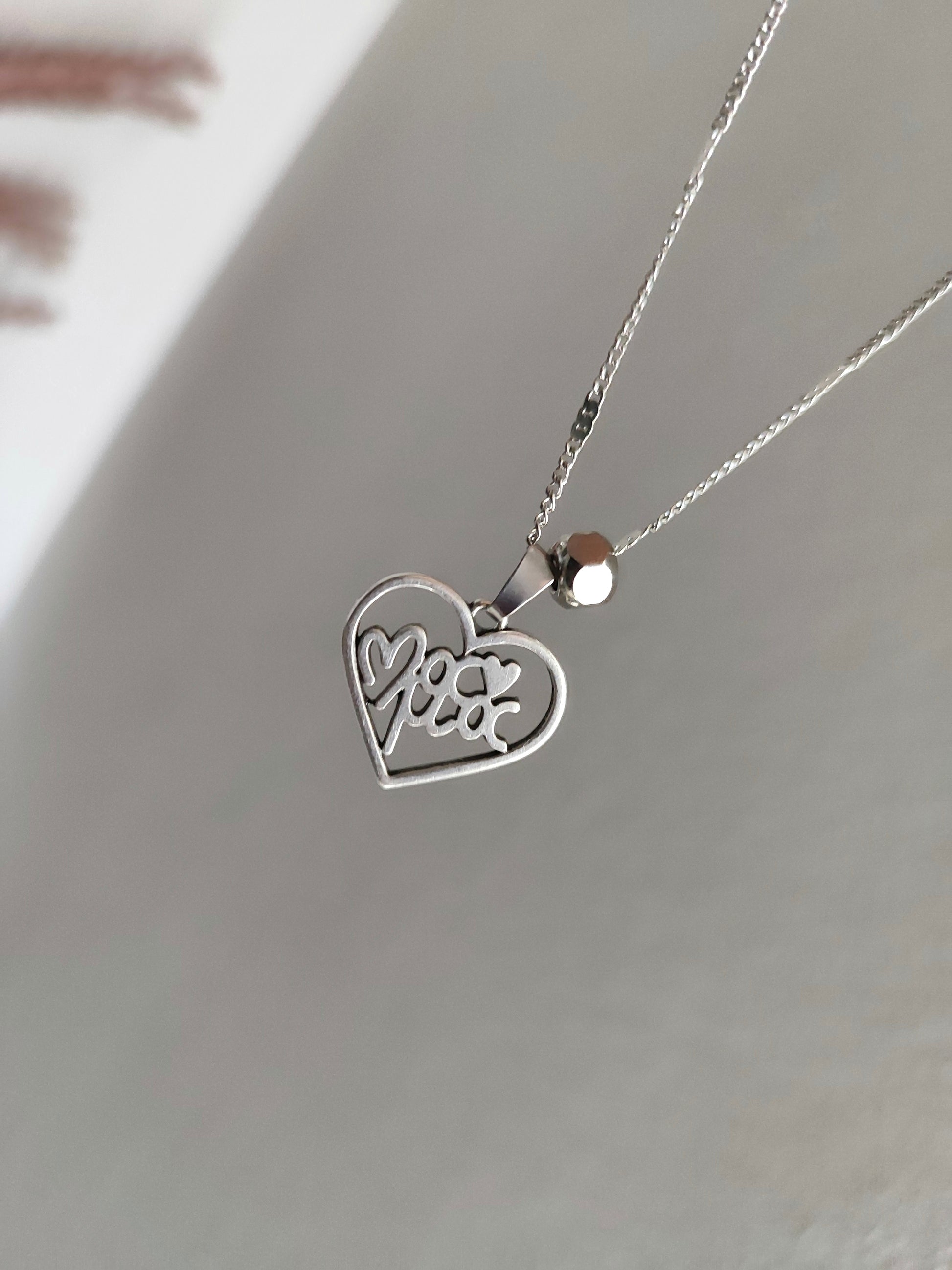 Ατσάλινο κολιέ με επάργυρο μοτιφ Μαμά!!