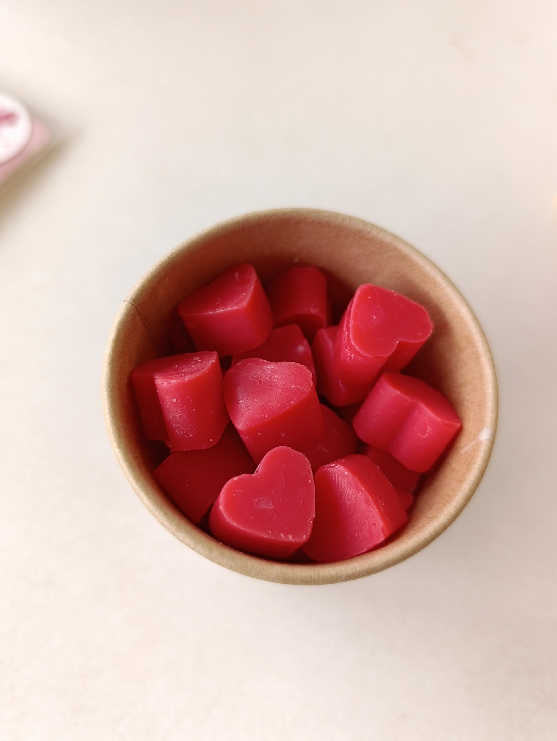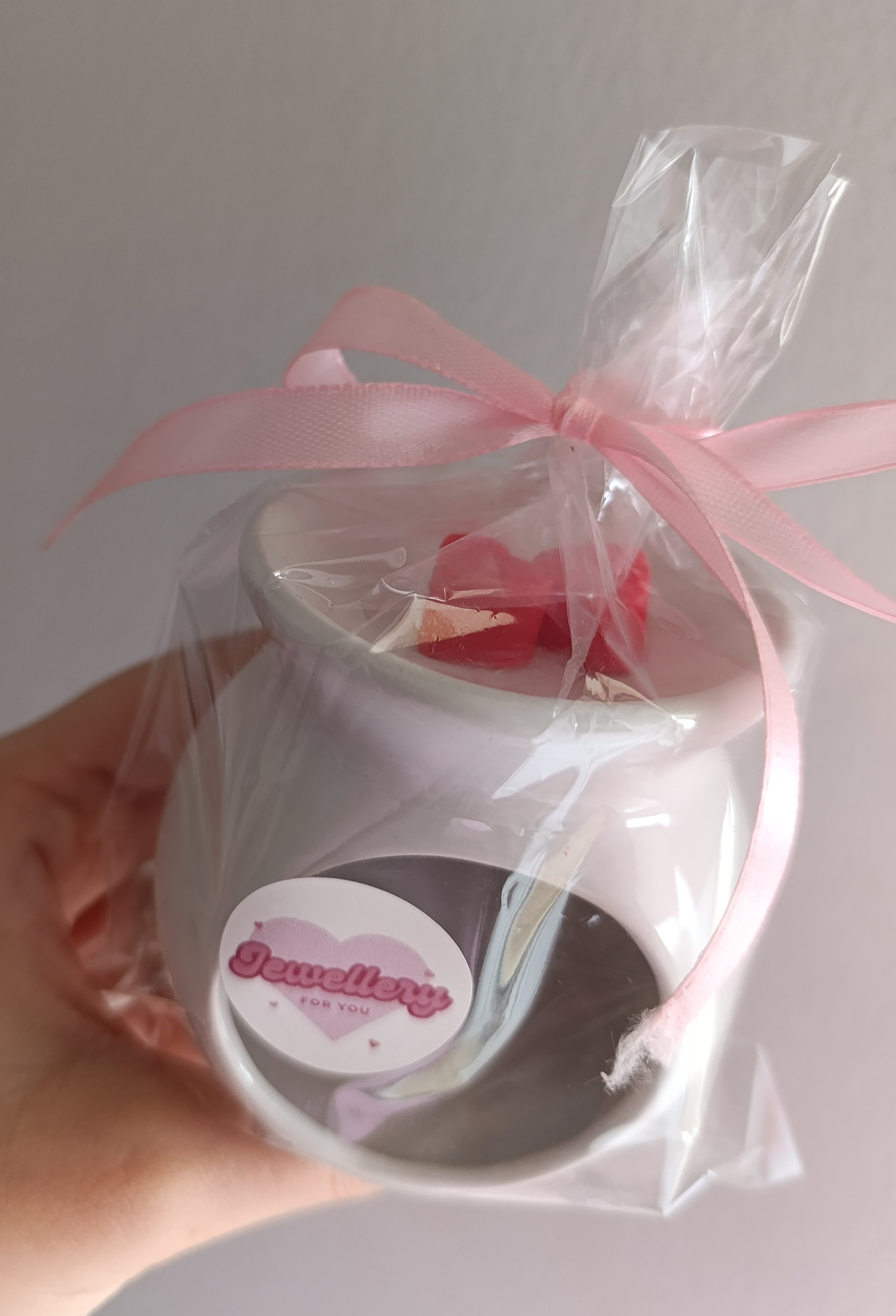 Η συσκευασία περιλαμβάνει ένα ατσάλινο κολιέ με κόκκινη καρδιά, ένα ατσάλινο βραχιόλι με χρυσές καρδούλες, 50gr wax melts καρδούλες και ένα αρωματικό διακοσμητικό τριαντάφυλλο το οποίο μπορεί να χρησιμοποιηθεί και σαν wax melts!